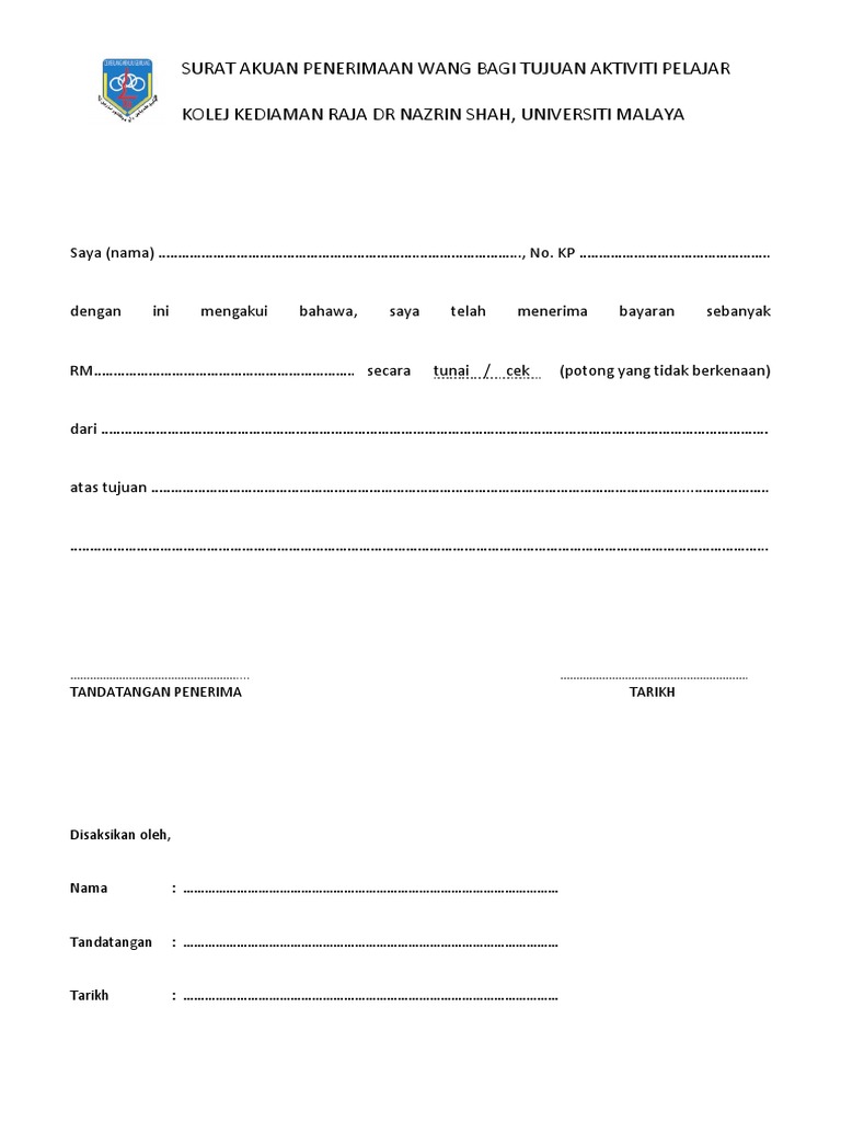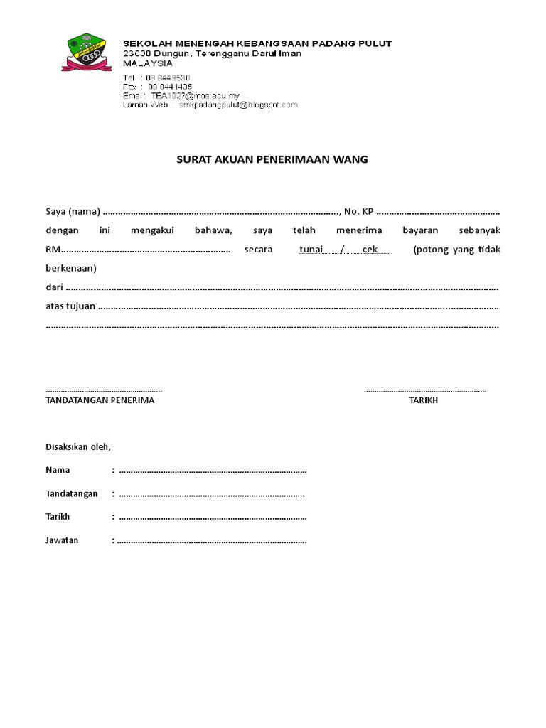 Contoh surat akuan terima wang have a graphic associated with the other contoh surat akuan terima wang it also will include a. Ratus sahaja daripada pihak sekolah smk bukit garam sebagai bayaran saguhati. Kegiatan seperti ini akan selalu memerlukan bukti yang dapat.